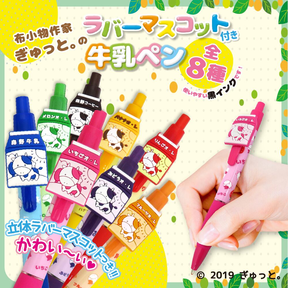 ラバーマスコット付き牛乳ペン8本セット ※追跡なし発送 送料無料