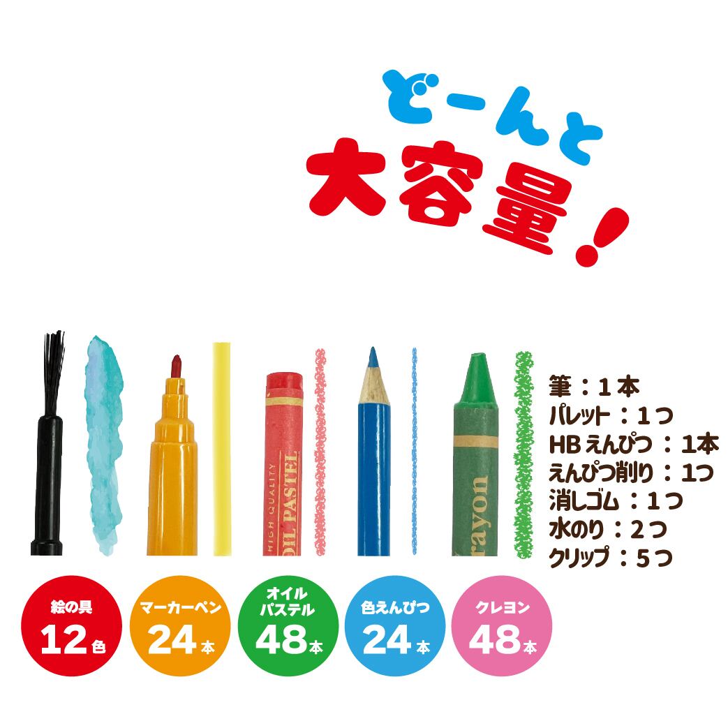 ●ペン、色鉛筆、絵の具などがたくさんはいったお絵描きセット