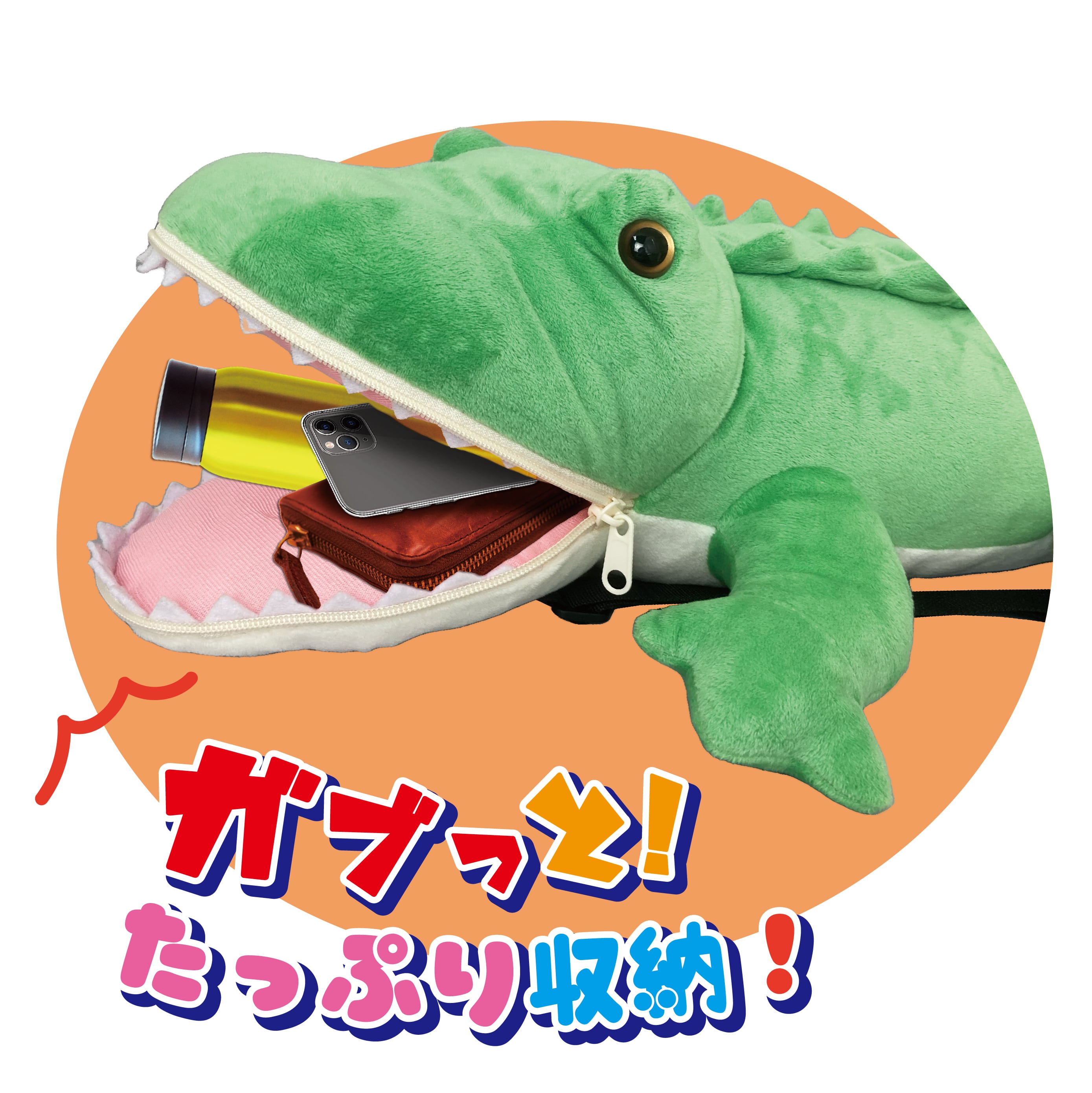 ●ユニークなガブリ口を持つワニの形が特徴で、どこに行っても注目の的になります。